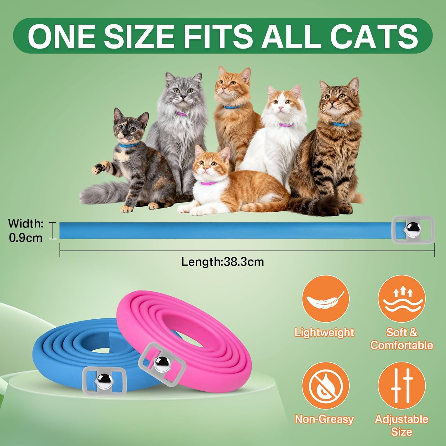 32-MONTH FULL-BODY PROTECTION: Each flea and tick collar for cats provides 8 months of flea defense, and four collars deliver a total of 32 months of continuous coverage. Using natural diffusion, the active ingredients spread from the neck through the fur and skin, forming a protective layer within 24 hours. This helps repel and control fleas and ticks, while reducing itching and recurring disturbances. No need for frequent replacement—saving time and effort and remaining friendly to both pets and owners.