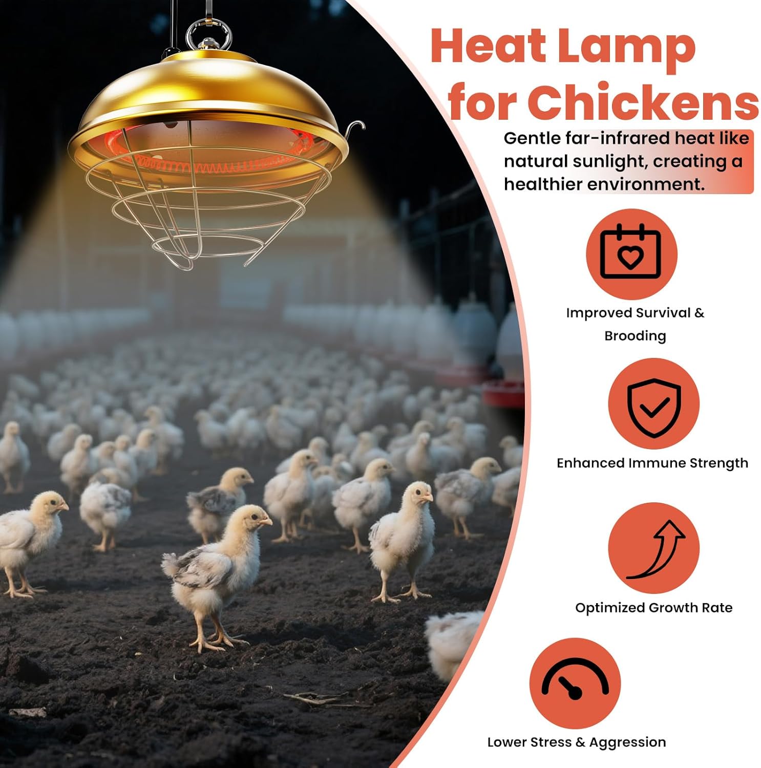 Multi-Purpose Heating Lamp: More than a chicken coop heat lamp, this versatile heat lamp also works for rabbits, dogs, cats, and livestocks. A practical chicken brooder heater lamp and heater for hen house in colder months