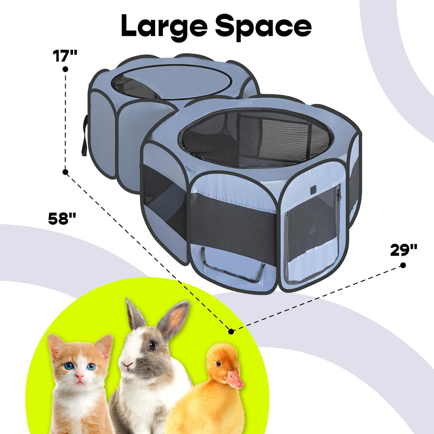 【Instant Setup, 2-in-1 Spacious】Pop-open rectangular or octagonal design playpen that require zero assembly – simply unfold within seconds. When need to store it, the collapsible playpen folds flat easily and stored into a compact carry case, making it ideal for indoor/outdoor use. The spacious 2-in-1 design gives more space for small animals to roam.