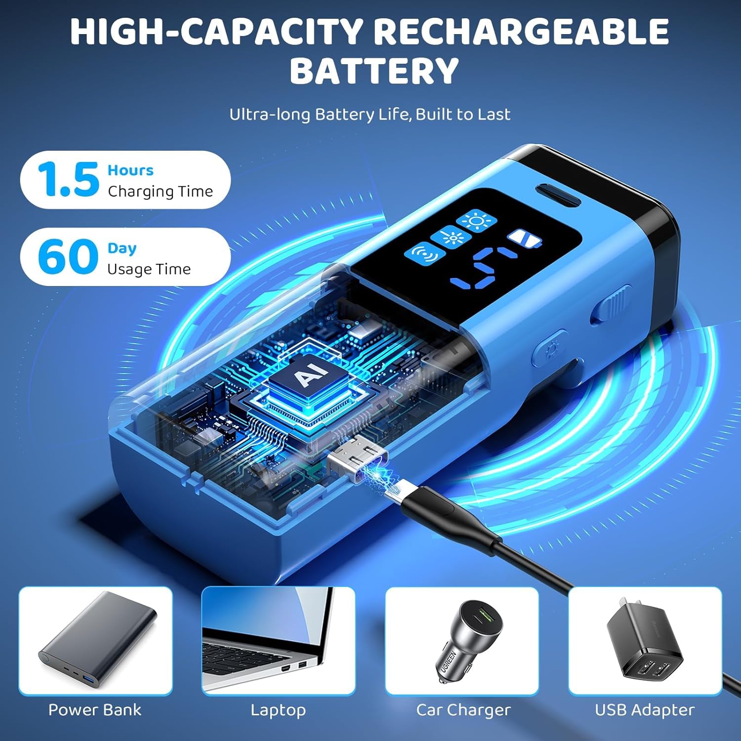 🔋𝐔𝐒𝐁-𝐂 𝐑𝐞𝐜𝐡𝐚𝐫𝐠𝐞𝐚𝐛𝐥𝐞 𝐓𝐞𝐜𝐡𝐧𝐨𝐥𝐨𝐠𝐲: Features USB-C charging (4-6 hour full charge) with 800mAh battery for long-lasting pet bark control. The powerful LED flashlight illuminates roads during night walks while emitting ultrasonic to bark stopper for dogs.