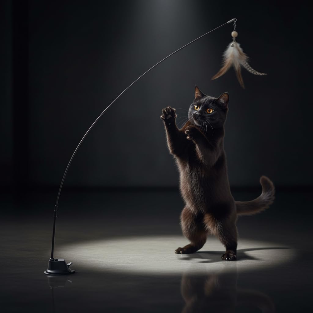 DURABLE & EASY TO USE: The interactive cat feather toy includes a highly flexible rod and a strong suction cup base that can be attached horizontally or vertically to any flat, clean surface. The best part is that it requires no interaction from you, and your cat can play whenever they want.