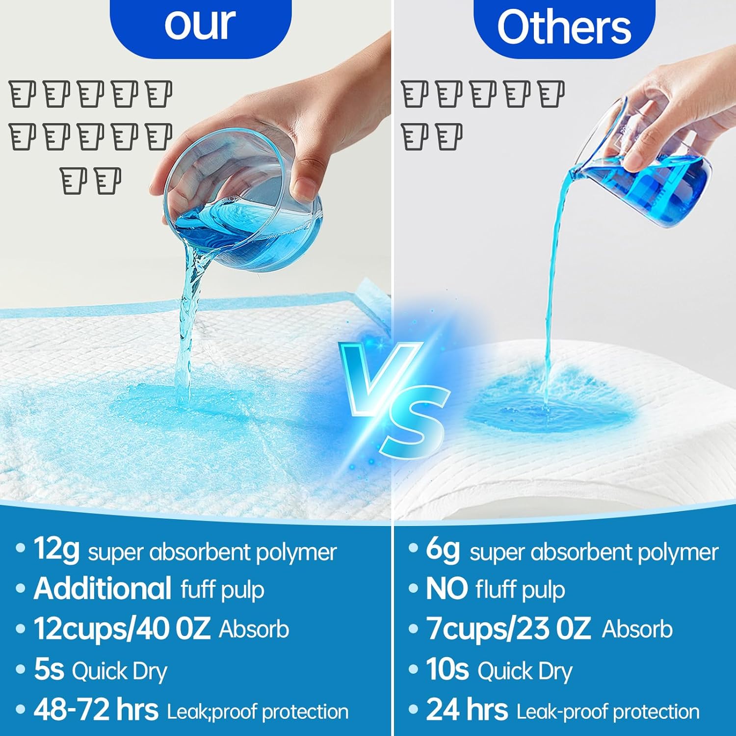 【Cost-Effective Bulk Pack】Large 23.6 x 23.6 inch size provides ample coverage area for pets,With 40/80/120-packs bulk set,ensures you always have fresh pee pads available for consistent training,saving you time and hassle.Bay more,pay less!
