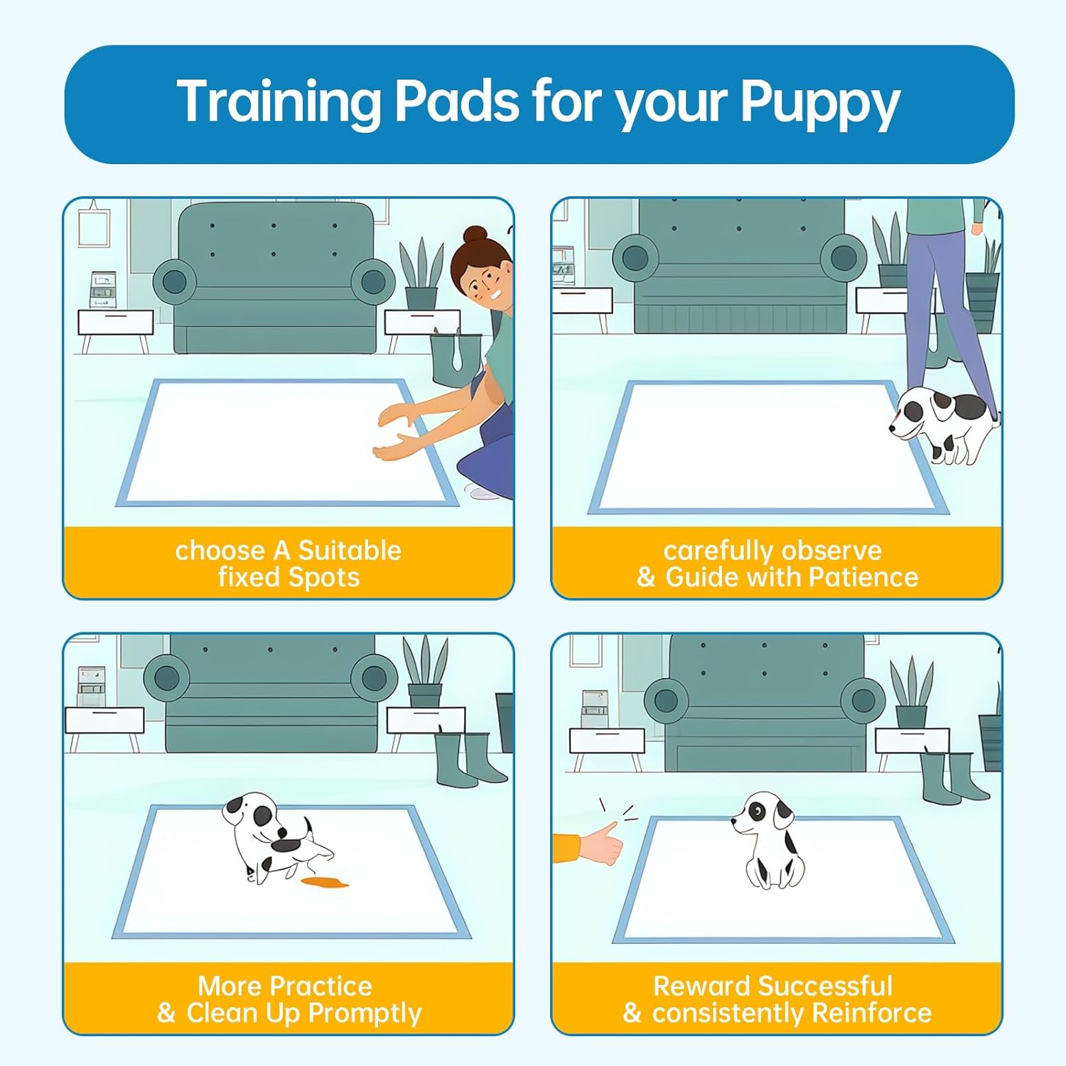 【Must-Have dog Pads】Undoria dog training pads is ideal for potty training, sick dogs, extended time indoors, and travel.Built-in pheromones that signal the ideal potty spot. This attracts puppies to the right spot for relieving themselves, making house training faster and easier while reducing accidents around the home.The dog pee pads work for puppy, adult dogs, and seniors. These pads can also be used for cats, rabbits, and other small pets