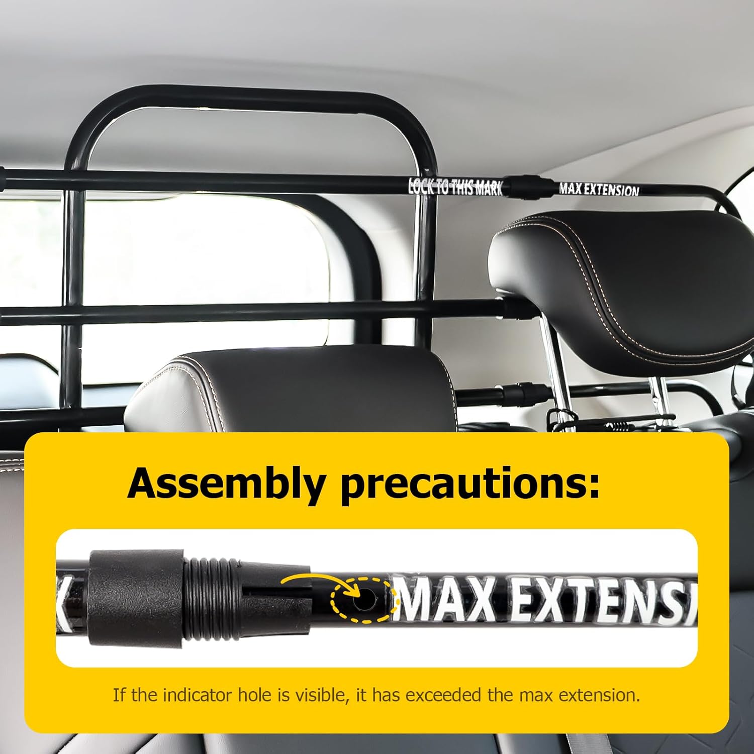 【Triple Safety Assurance】Our dog barrier for truck (and other vehicles) prevents pets from interfering with driving or blocking the rearview mirror,enhancing safety.Crafted with high-quality metal tubes,it has no sharp parts,resisting scratches on seats and headliners to keep your car’s interior undamaged.